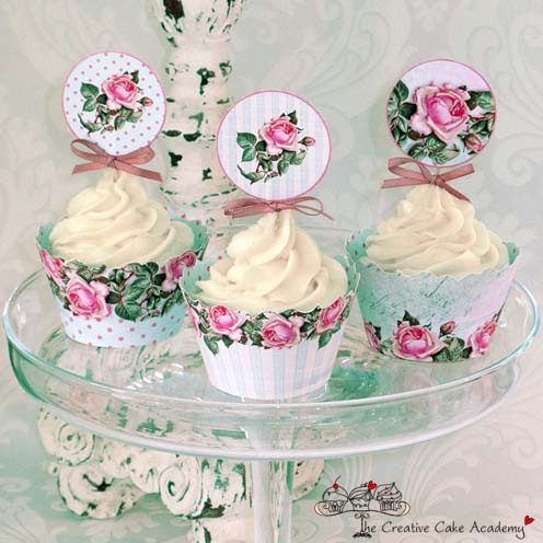 ROSE GARDEN CUPCAKE WRAPPERS AND MATCHING STICK PIN